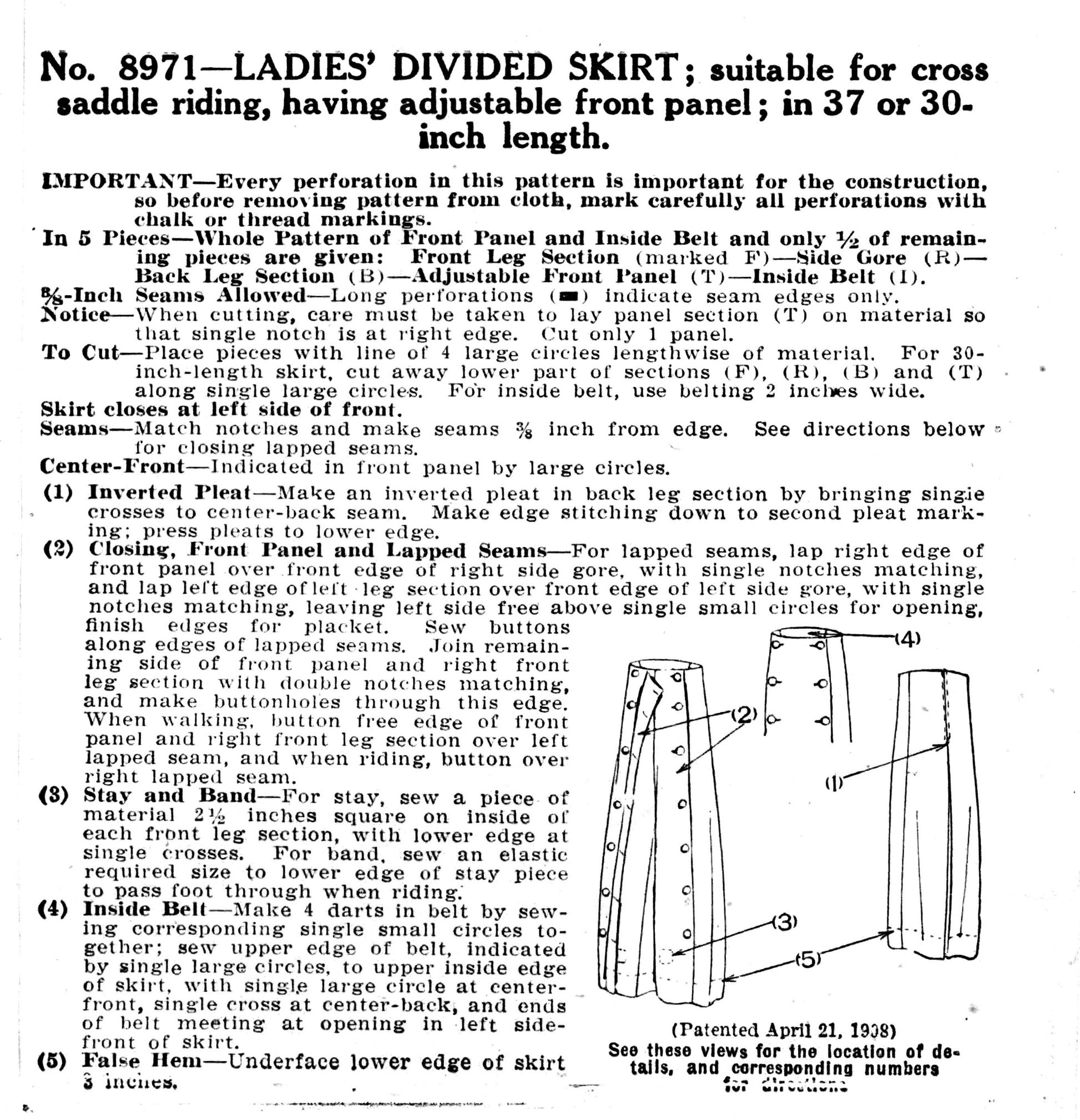 E-Pattern- 1910s 1920s Riding Pants or Split Skirt- 22"-42" Waist