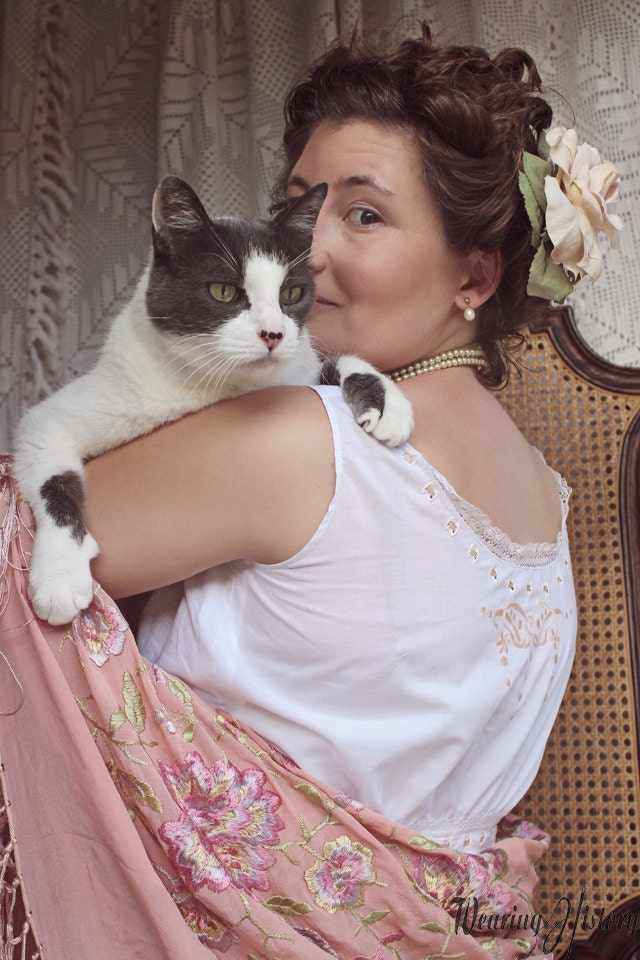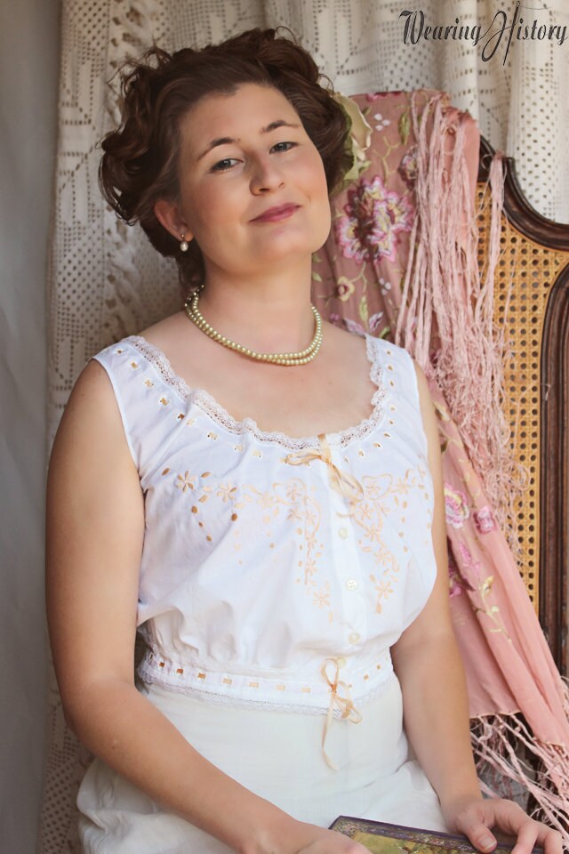 This camisole or corset cover pattern is based on an original period pattern from the 1910s. It is equally lovely when worn for period costume or worn as a modern casual top!