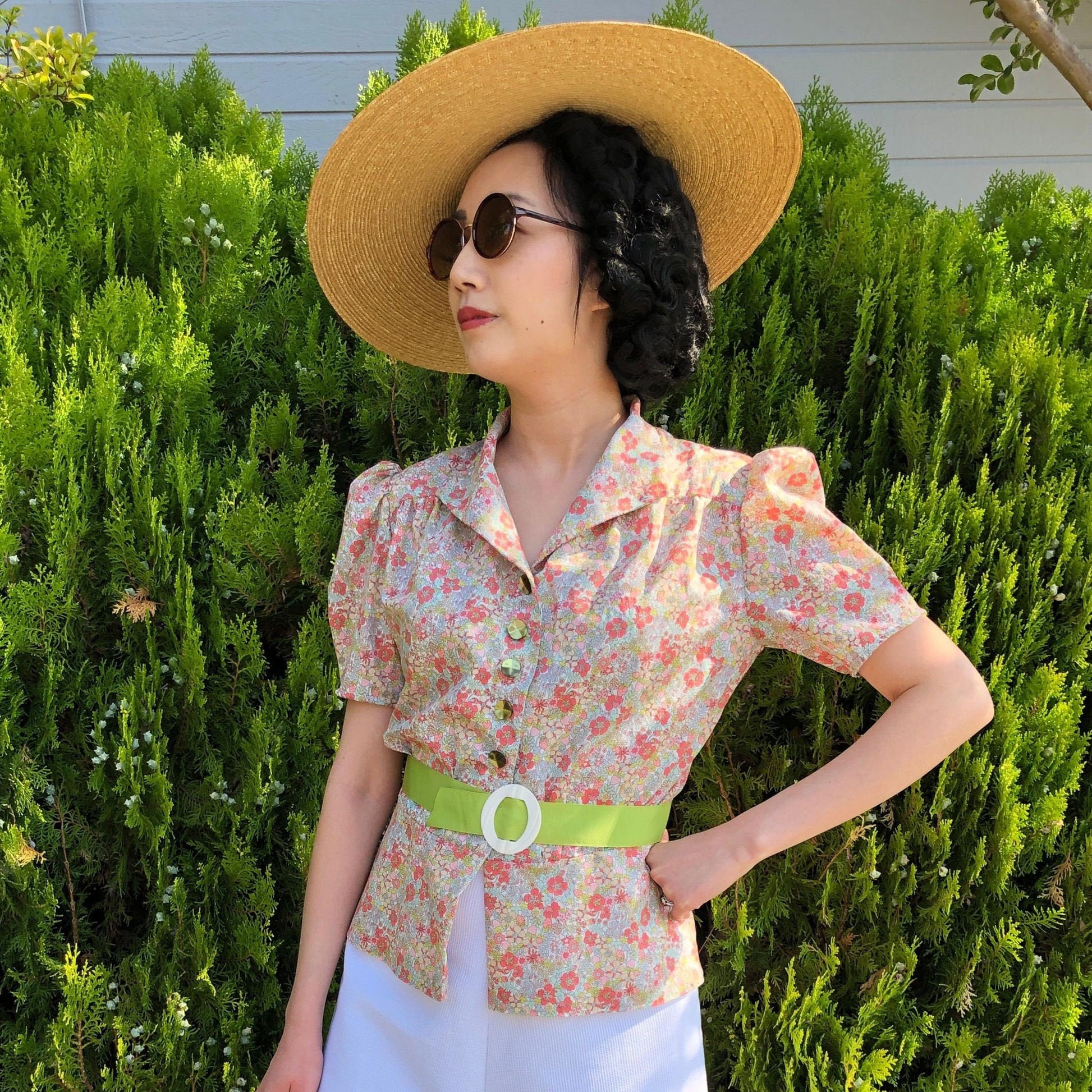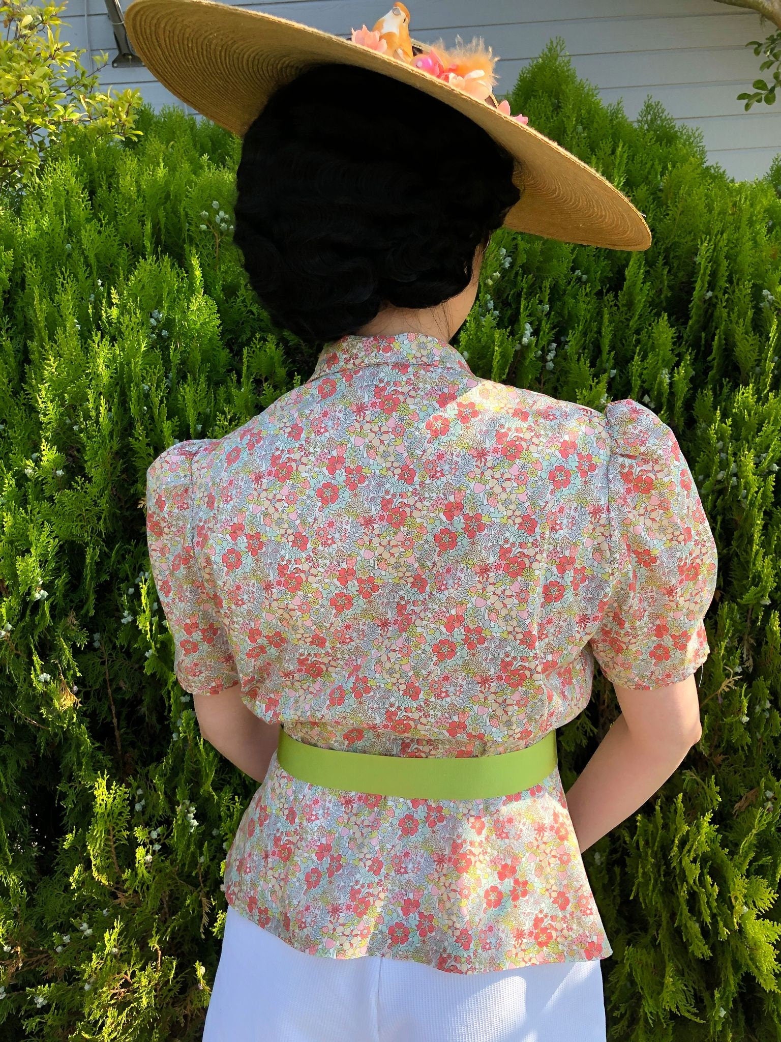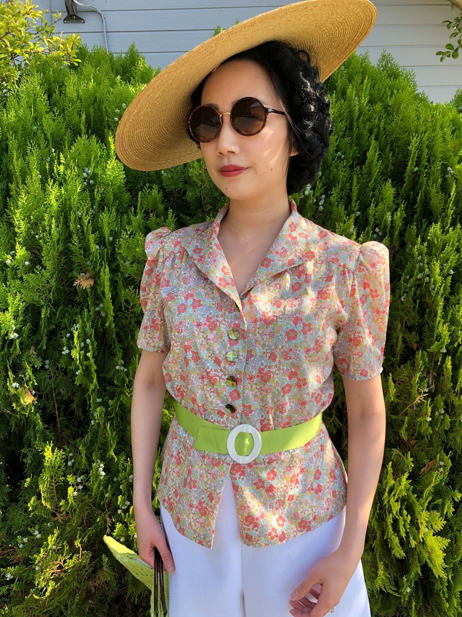 ***MANY THANKS to Vivien of freshfrippery.com for her beautiful photos of her wearing the blouse she made from this pattern! She adapted the front to allow for buttons- it's an easy pattern hack you can do yourself (instructions aren't included for button front)***