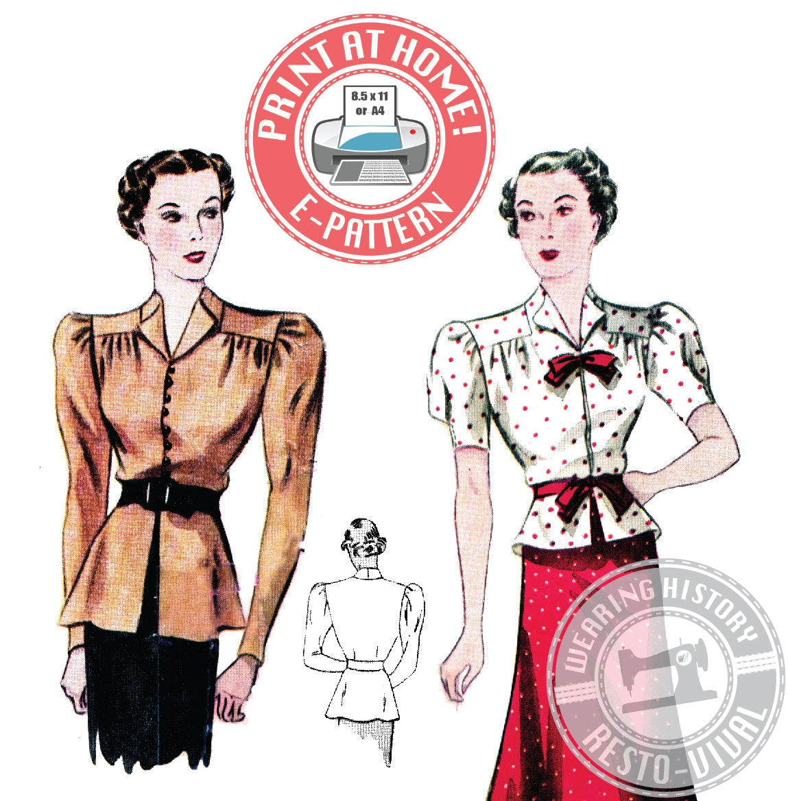 The short sleeve blouse and short peplum looks cute in cotton prints. Great for novelty fabrics! The long sleeve tunic is elegant for formal dinner occasions or cocktail wear. Includes period illustrated instructions with added tips.