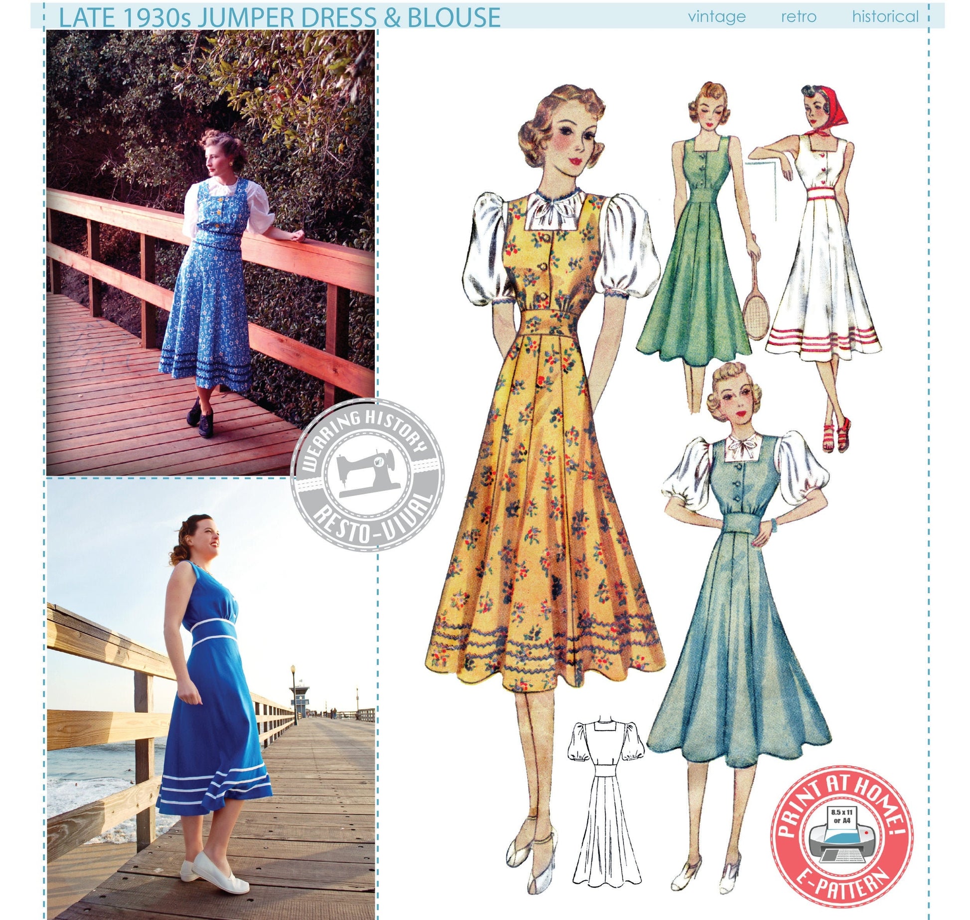 E-PATTERN- Late 1930s Jumper Dress & Blouse Pattern- 30-46" Bust