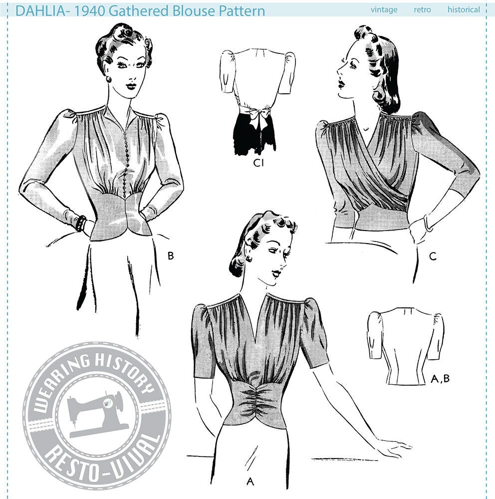 PRINTED PATTERN- Dahlia- 1940s Gathered Blouse- Wearing History Vintage Sewing Pattern