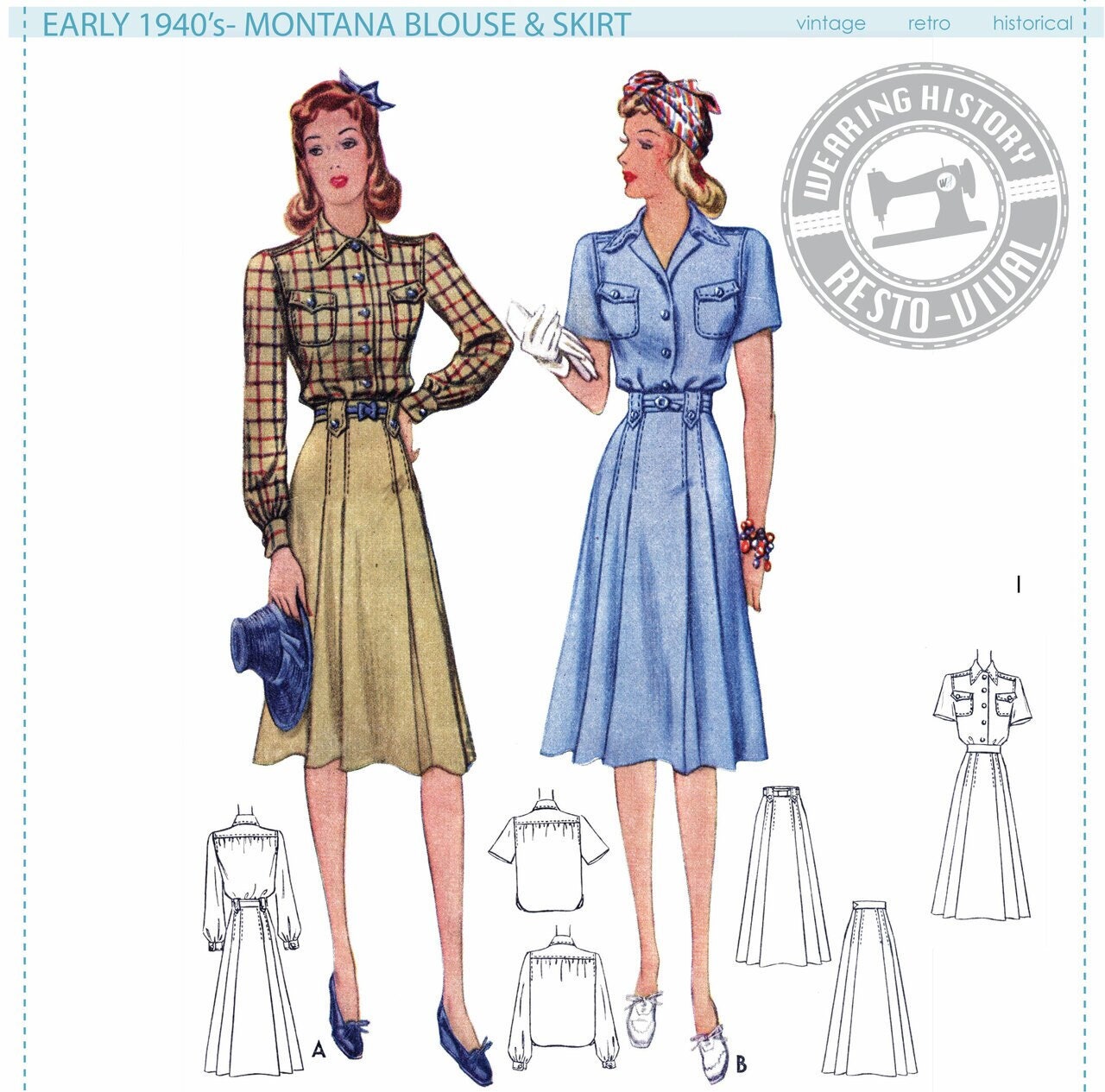 PRINTED PATTERN- Early 1940s Montana Blouse & Skirt Pattern- 30"-42" Bust