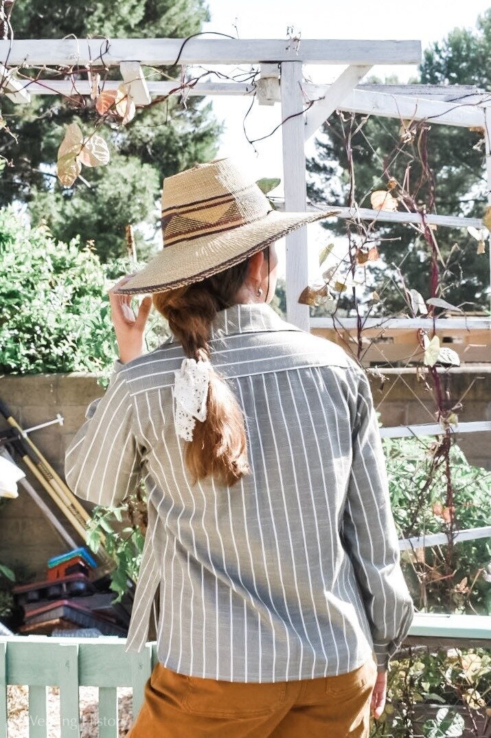 This pattern is best for Intermediate Difficulty. It is best to have a sewing book handy to help with more tricky construction bits. To make this pattern you should be familiar with making patch pockets and pocket flaps, set sleeves, attach a collar, and (for the long sleeves) make a sleeve placket and set a cuff.