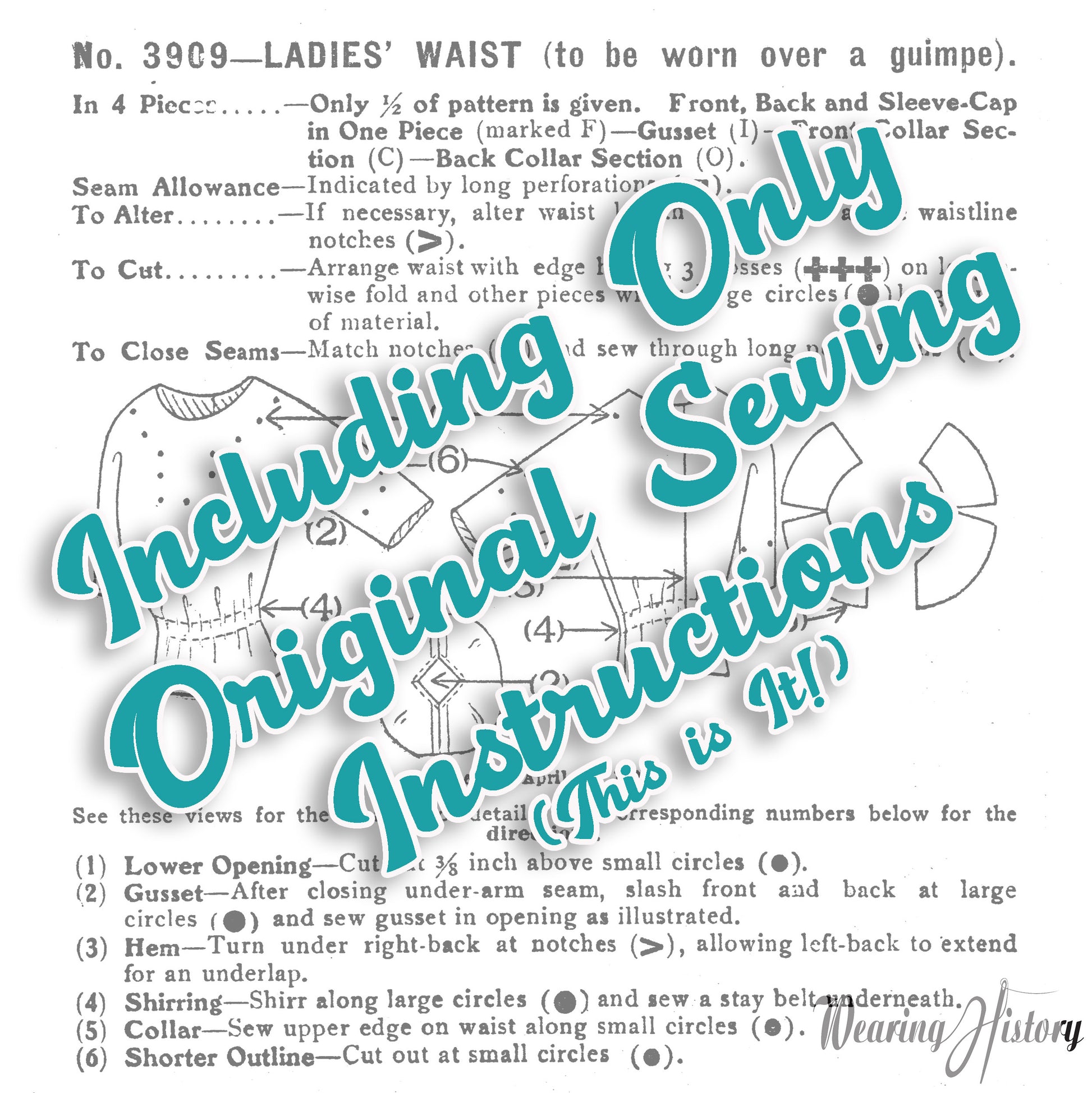 E-Pattern- Circa 1911 Ladies' Blouse to Be Worn Over a Guimpe- Size 32-44" Bust
