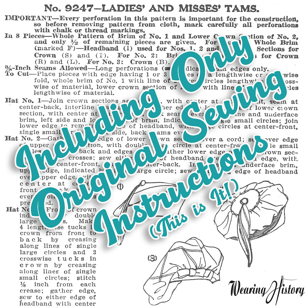 E-Pattern- Circa 1919 Tam Hats- Size 23.5" Head