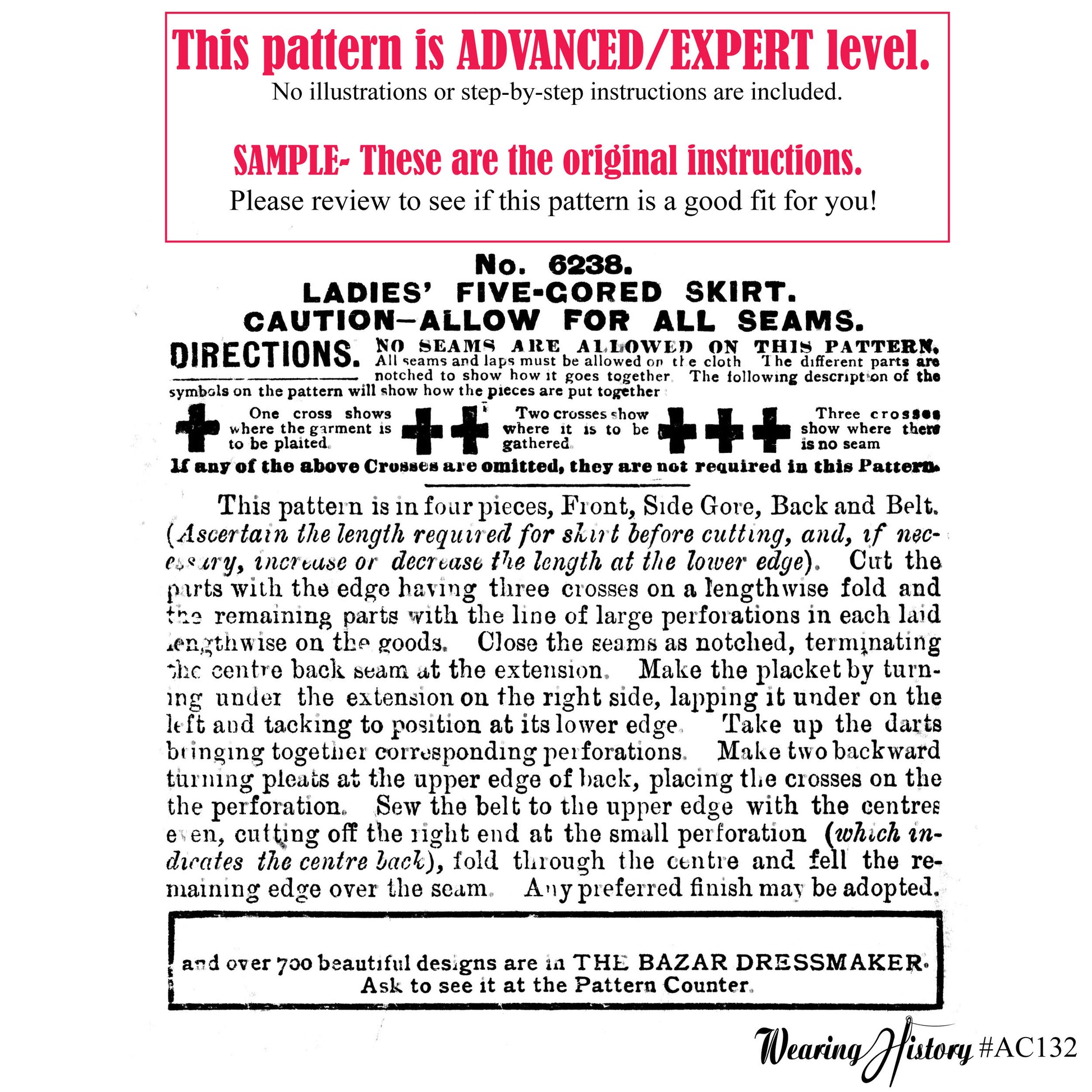 PRINTED PATTERN- 1900 Five Gored Skirt Pattern with Double Pleated Back