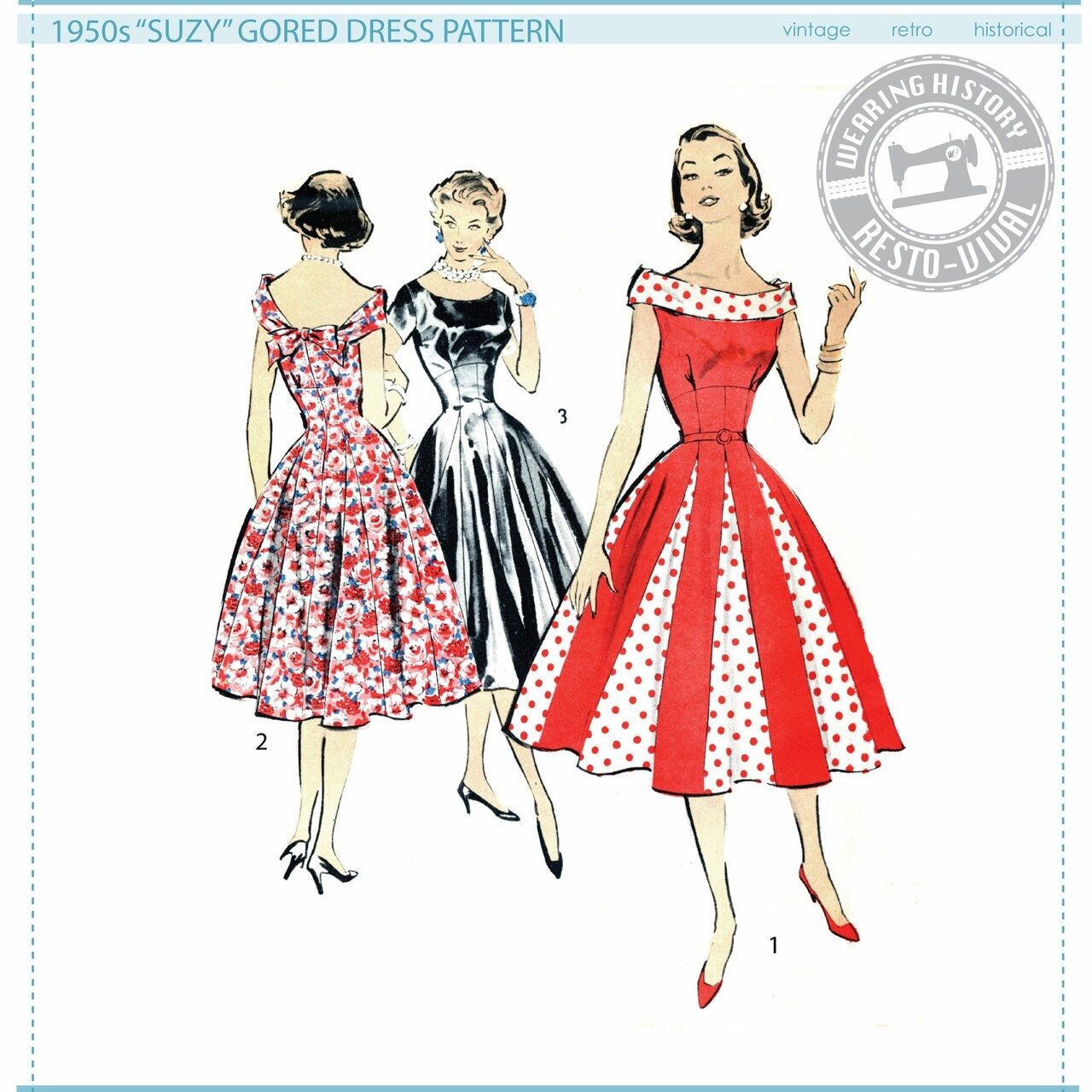 PRINTED PATTERN- 1950s "Suzy" Woman's Gored Dress Pattern