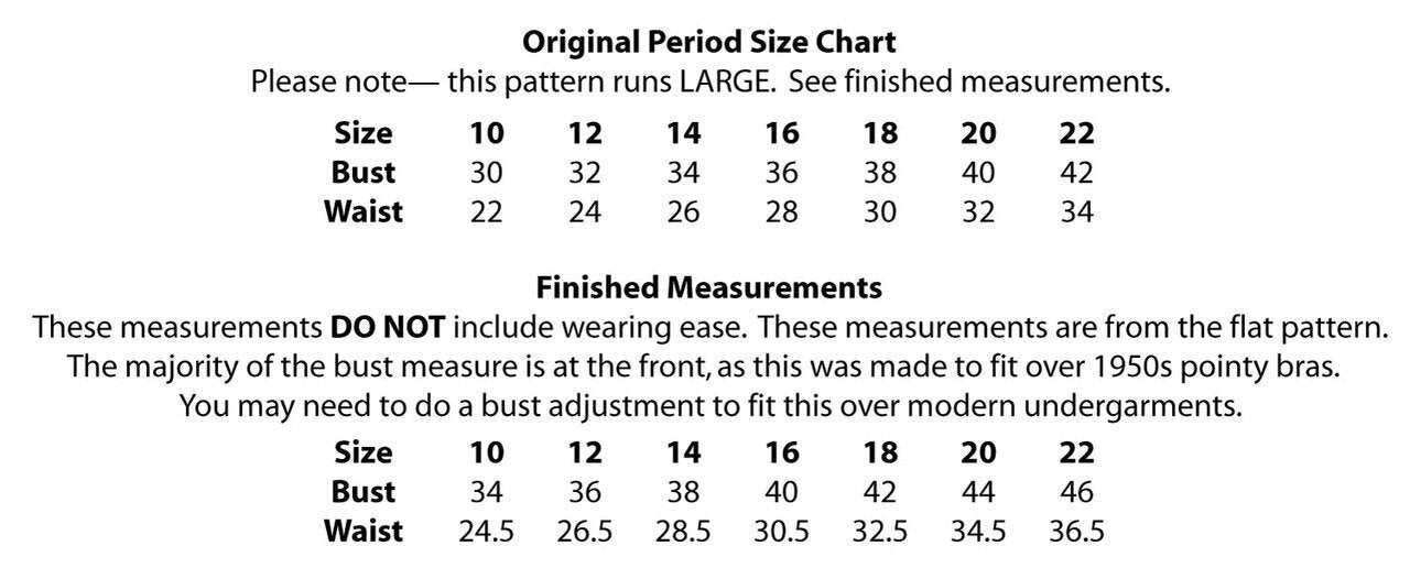 Because this was based on a period original, a mock up is HIGHLY SUGGESTED. Test construction and fit on your unique figure before cutting into your fashion fabric.