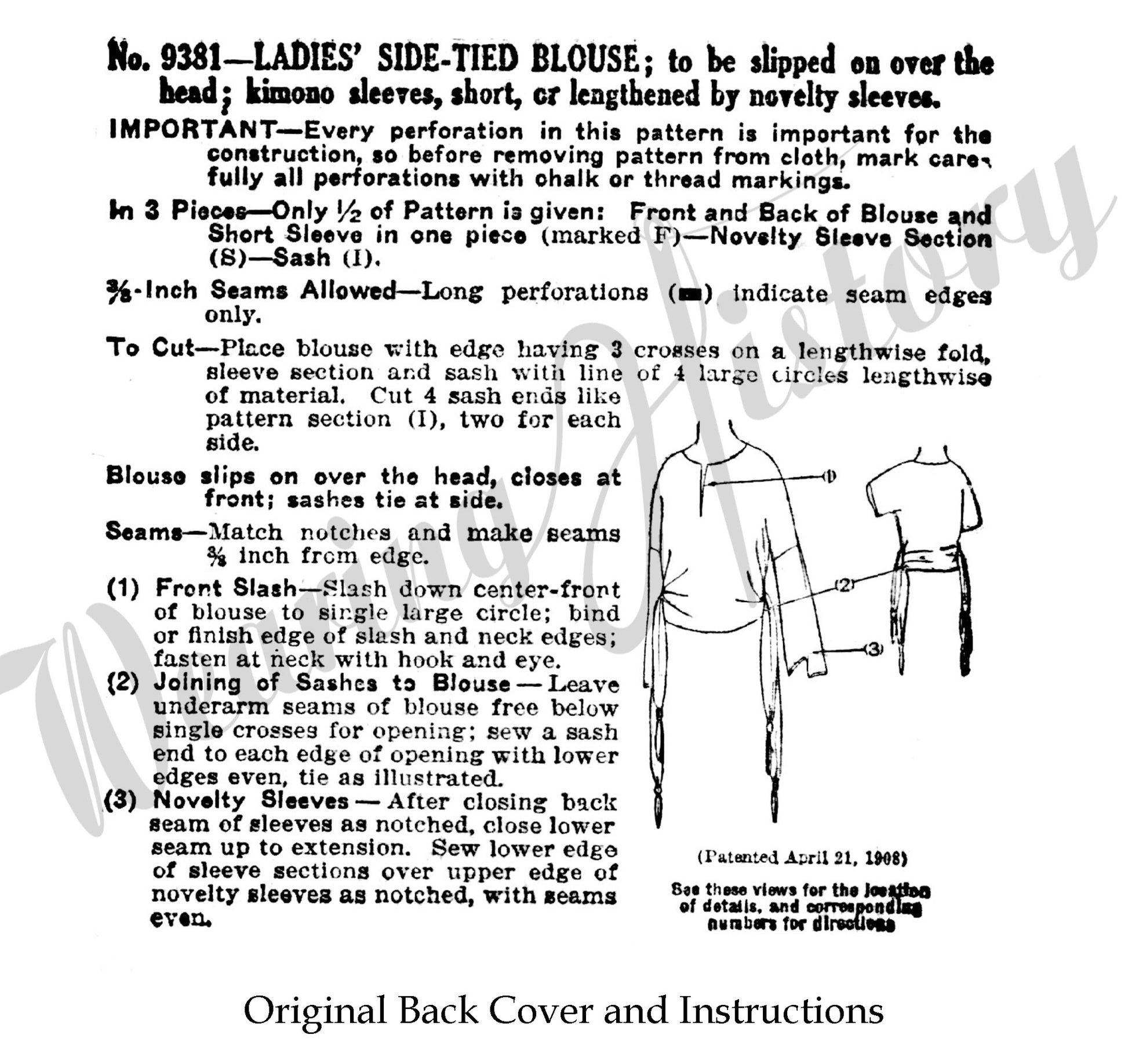 Circa 1920 Side-Tied Blouse Pattern