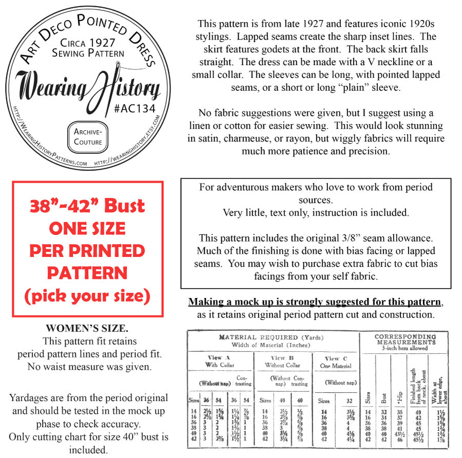 This pattern has original pattern fit and instructions from almost a hundred years ago, so adjustments and experimentation may be required.