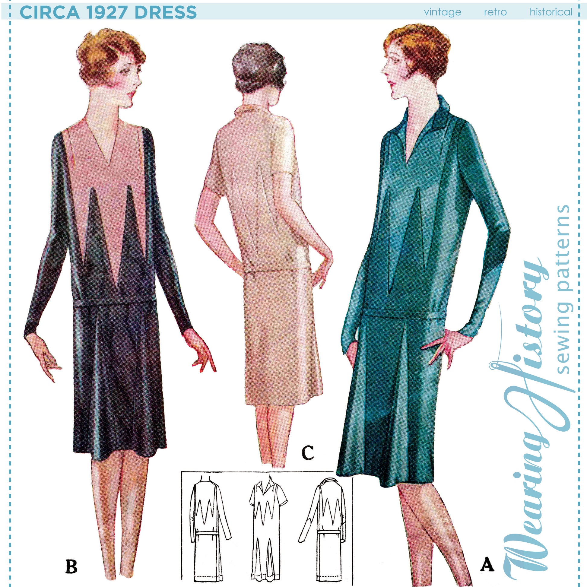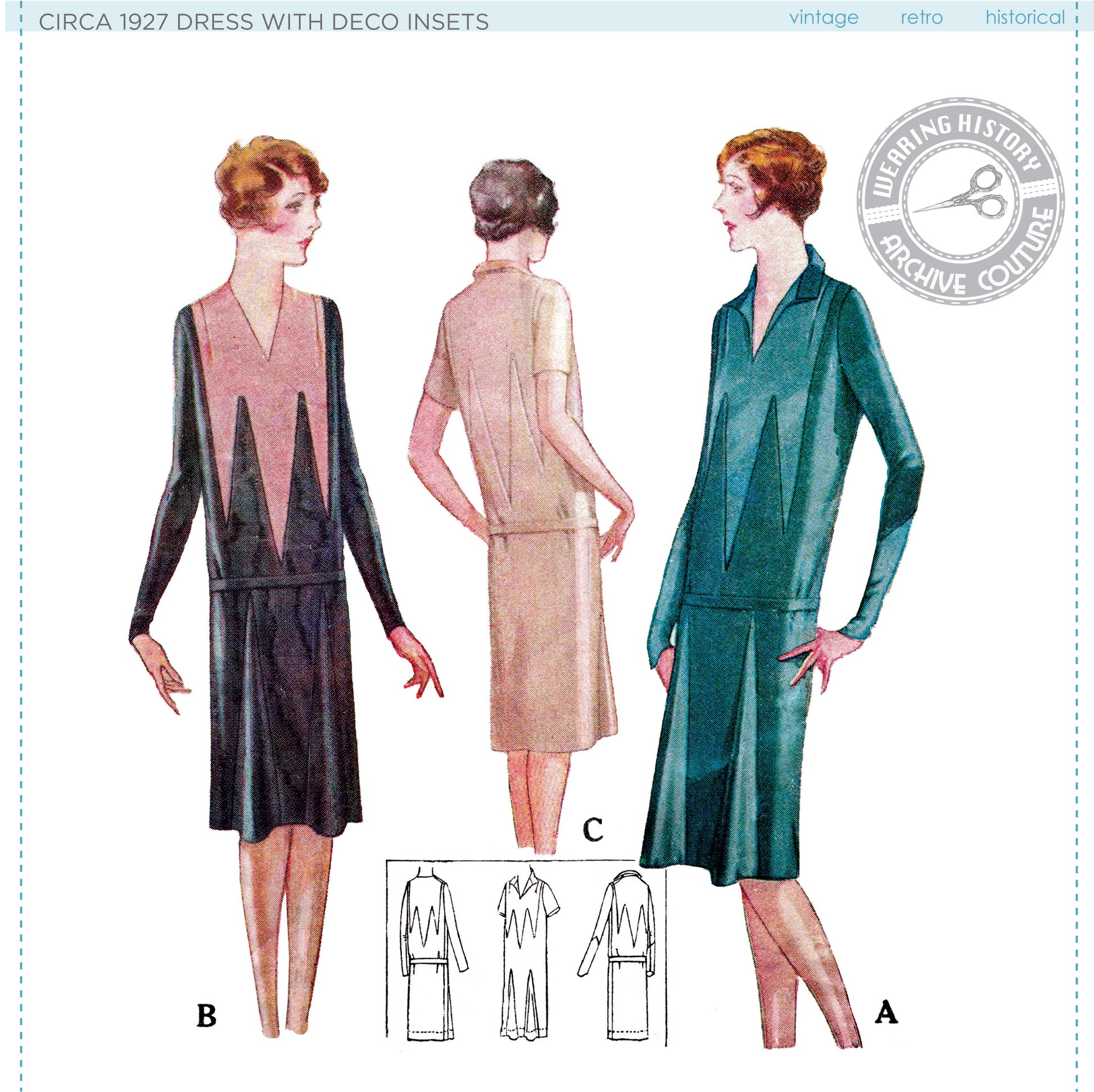 PRINTED PATTERN- Circa 1927 Art Deco Pointed Dress- Size 38-42" Bust- 1920s Dress Sewing Pattern