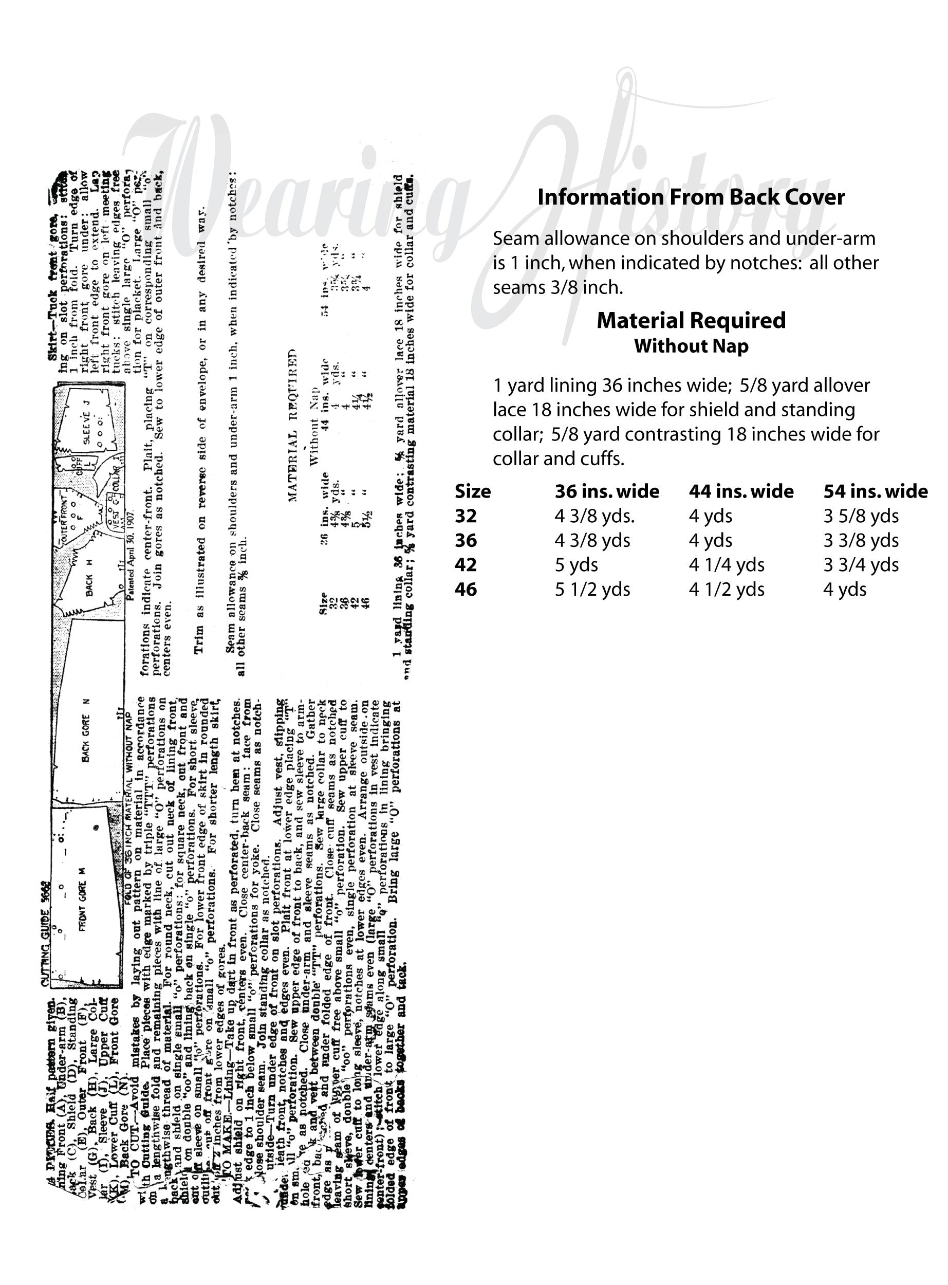 Included are original period instructions that are text only and very sparse. You may wish to have a sewing book handy for detailed techniques. This is complicated construction with a dress built over a bodice lining.
