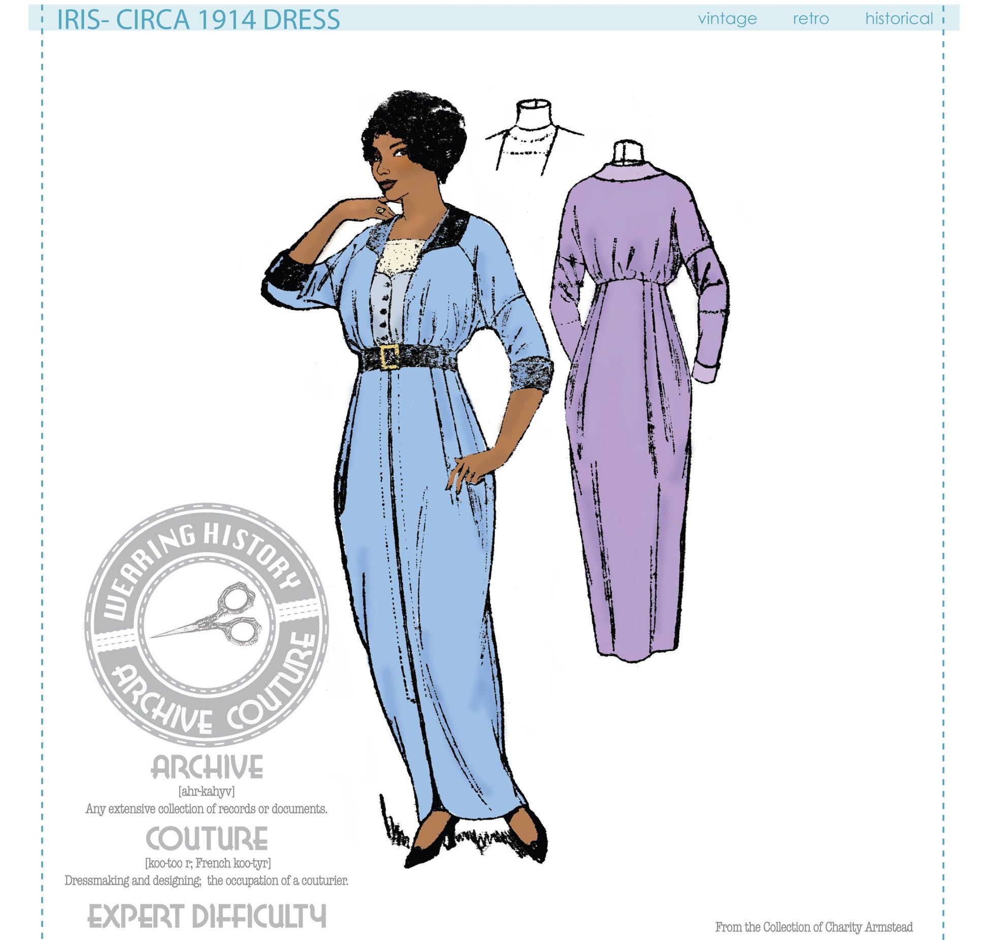 PRINTED PATTERN- Iris Circa 1914 Dress- 1910s- WWI- Bust 34" - Edwardian Wearing History 1900 Vintage Historical Costume Sewing Pattern