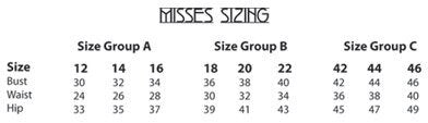 This pattern is available in Misses Sizes only. Please note that Sizes 42-46 are not for plus sizes and are based on a Misses Size block.